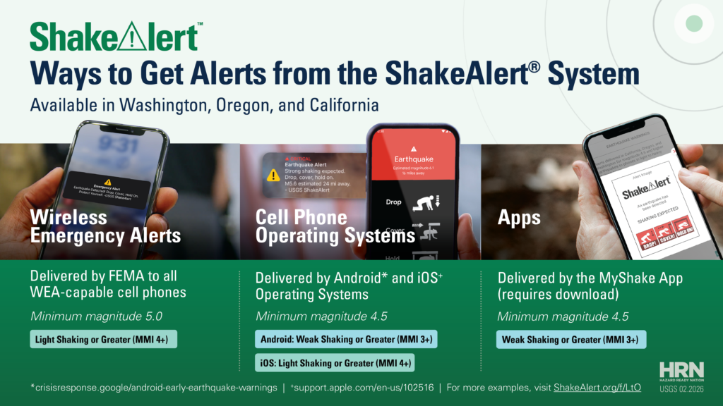 One of the best and easiest ways people can be earthquake-prepared is to ensure they can get ShakeAlert-powered alerts on their cell phones. More information to be ShakeAlert safe can be found here.